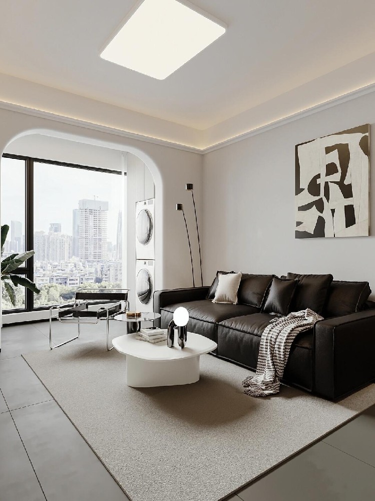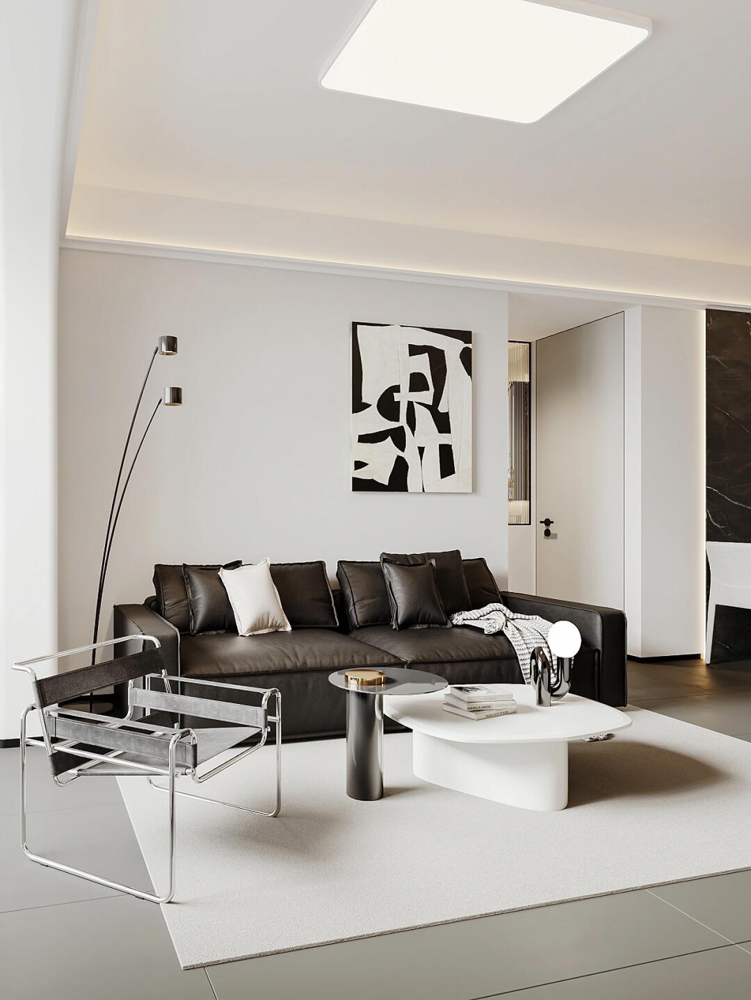 黑白灰配色無疑是現(xiàn)代簡約風(fēng)格的基礎(chǔ)了,最簡單的黑白灰搭配也能做出房屋的高級(jí)感,舒適感。