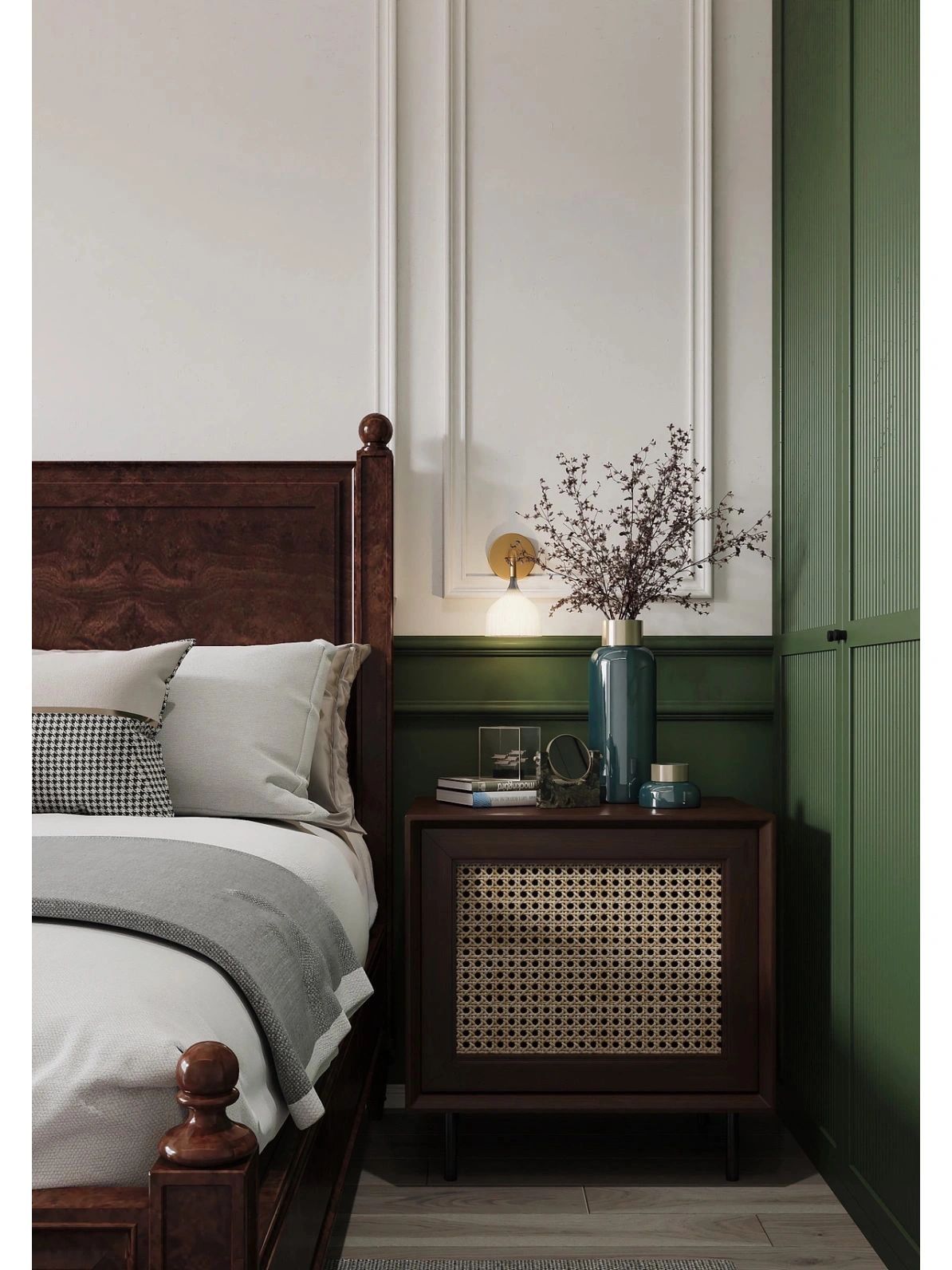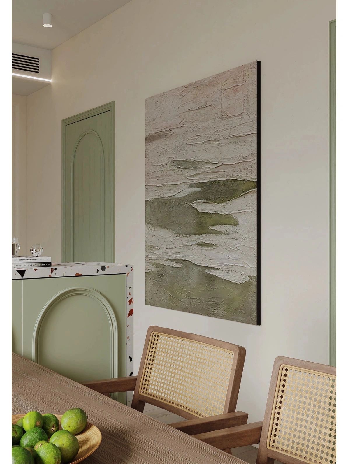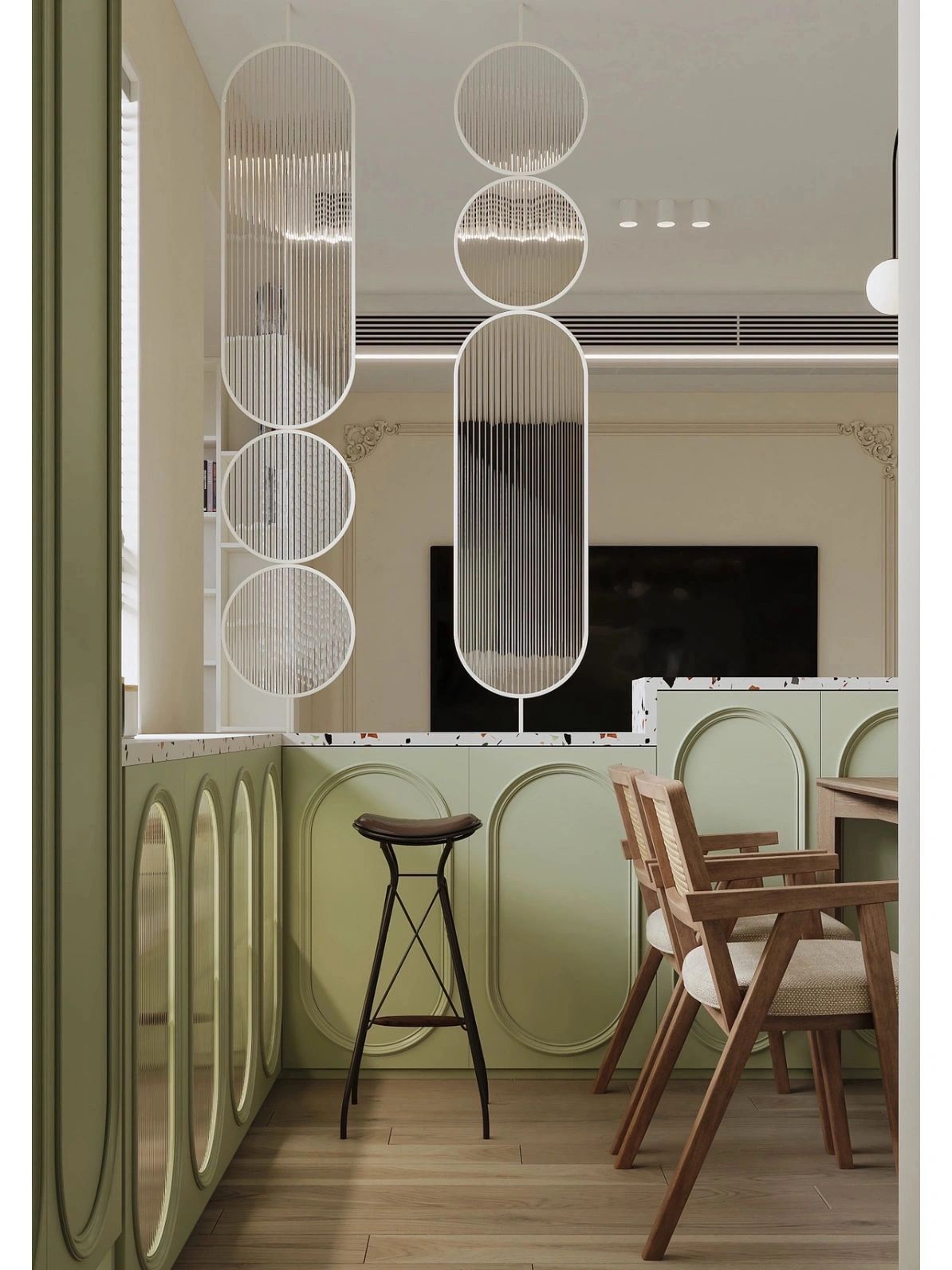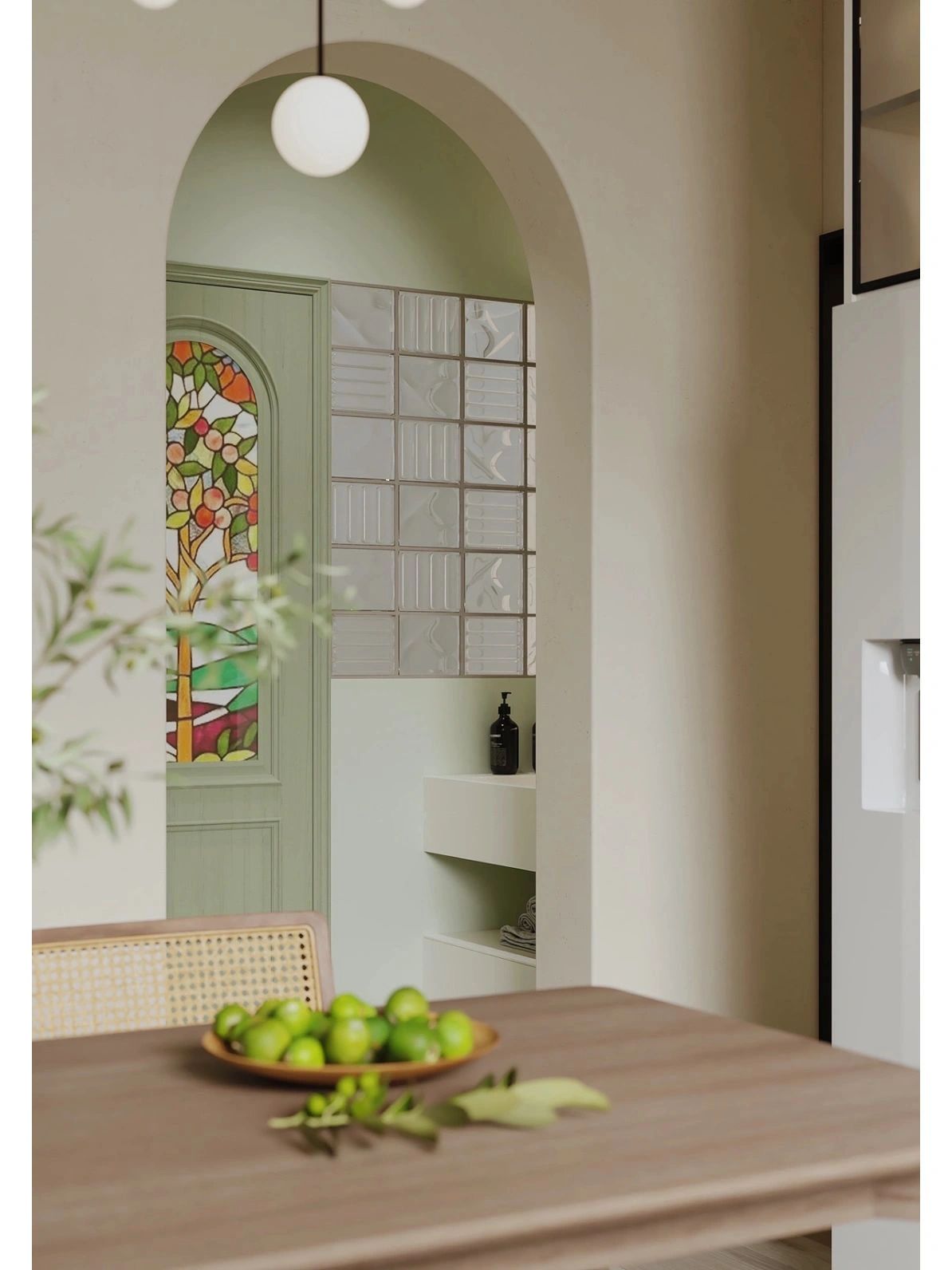 在全屋綠色的鋪陳下,用法式石膏線做裝飾,再加上混搭的現代&復古家居,清新自然又復古高級~