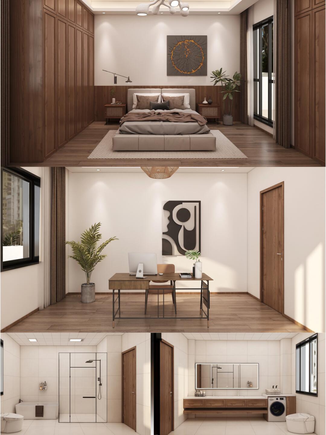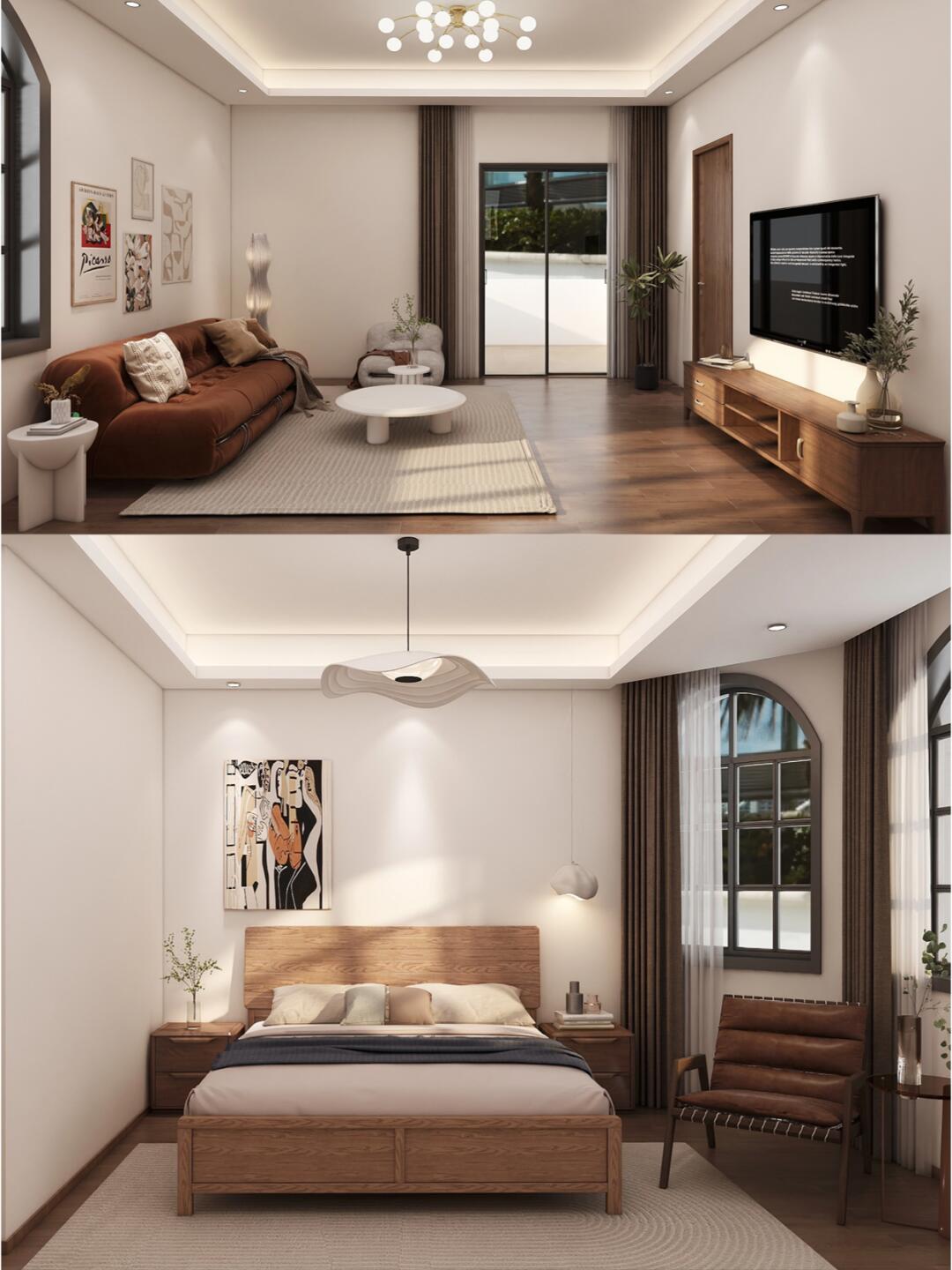 大量使用原木家具和白色墻面,再配上暖色調的燈光,營造出溫馨而舒適的氛圍。