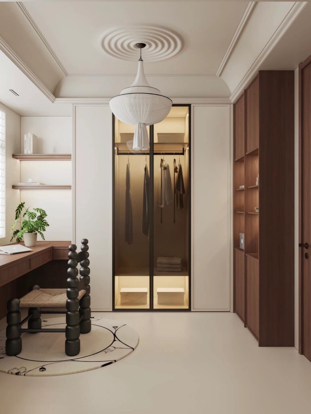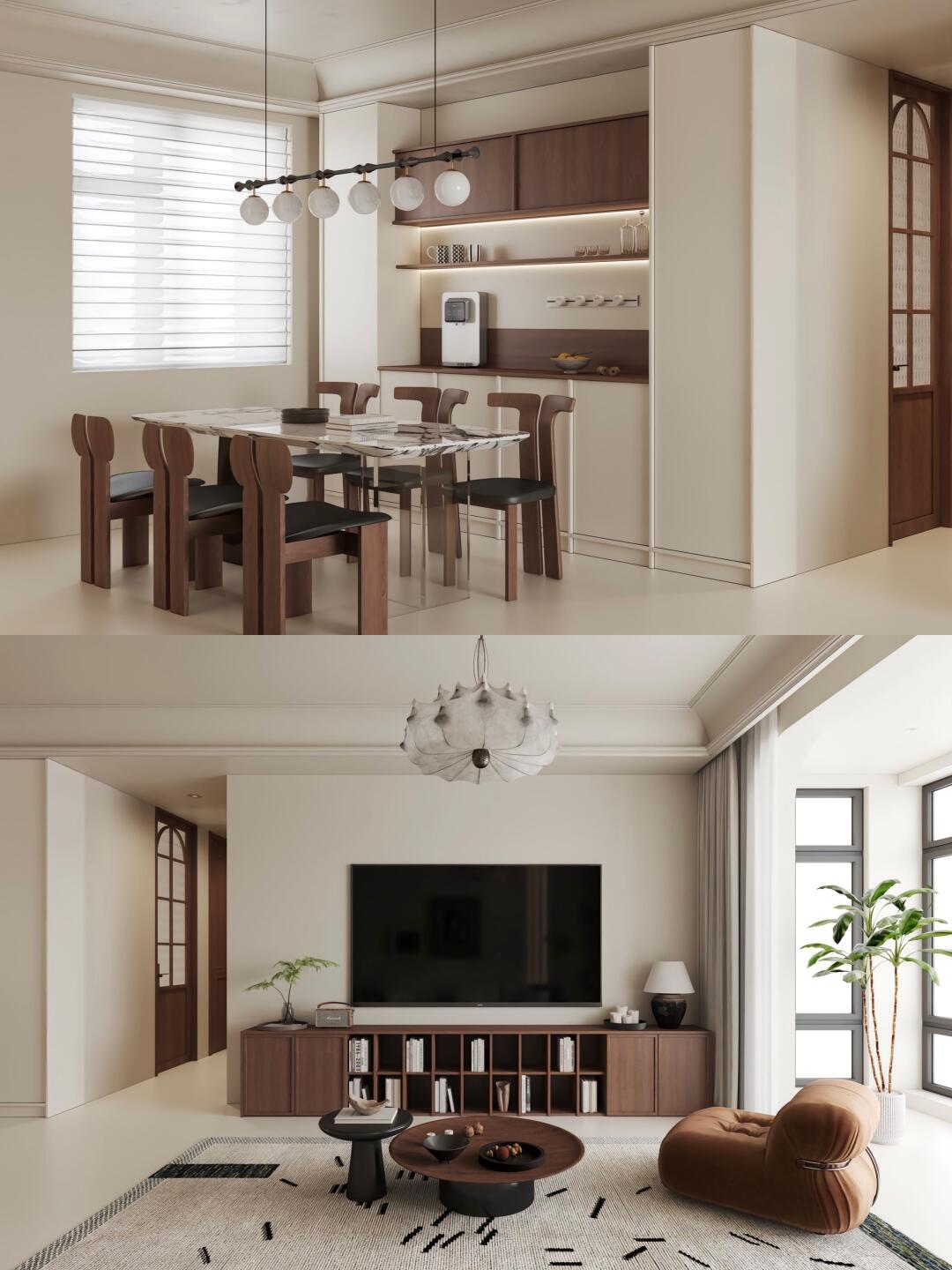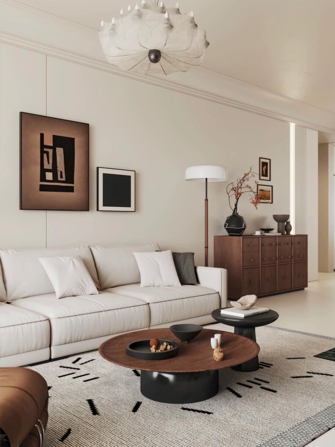 以其自然的材質和色彩,原始的木質家具、擺件,營造出一種優雅且克制的空間氛圍,