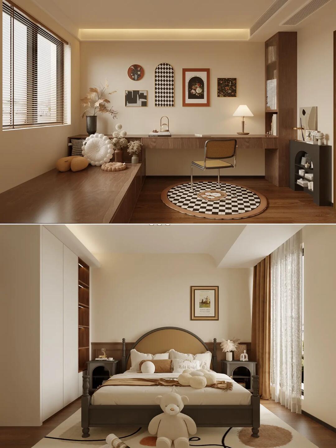 當然它也承包了未來孩子的休閑玩樂,真妙胡桃木橫梁造型設計可謂天花板的畫龍點睛之筆,
