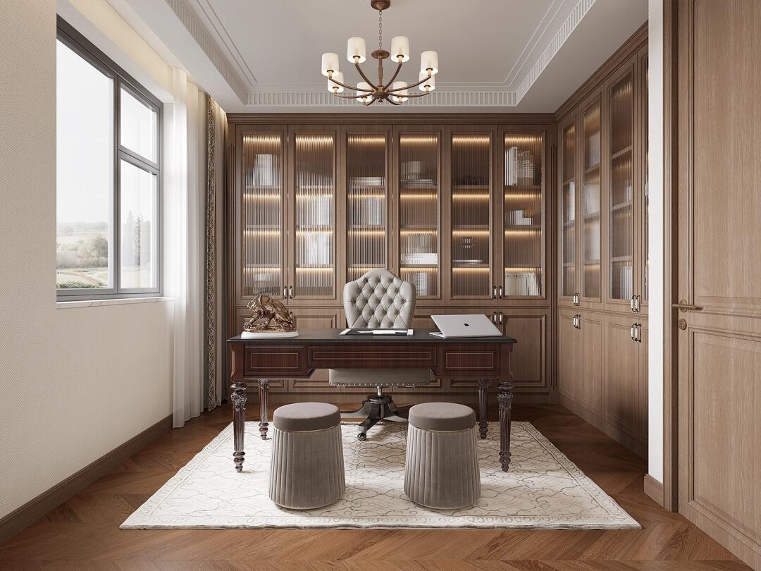 典雅大氣的書房空間糅合出別樣的韻味,如思想者般穩重的理性之美滲透于細部,
