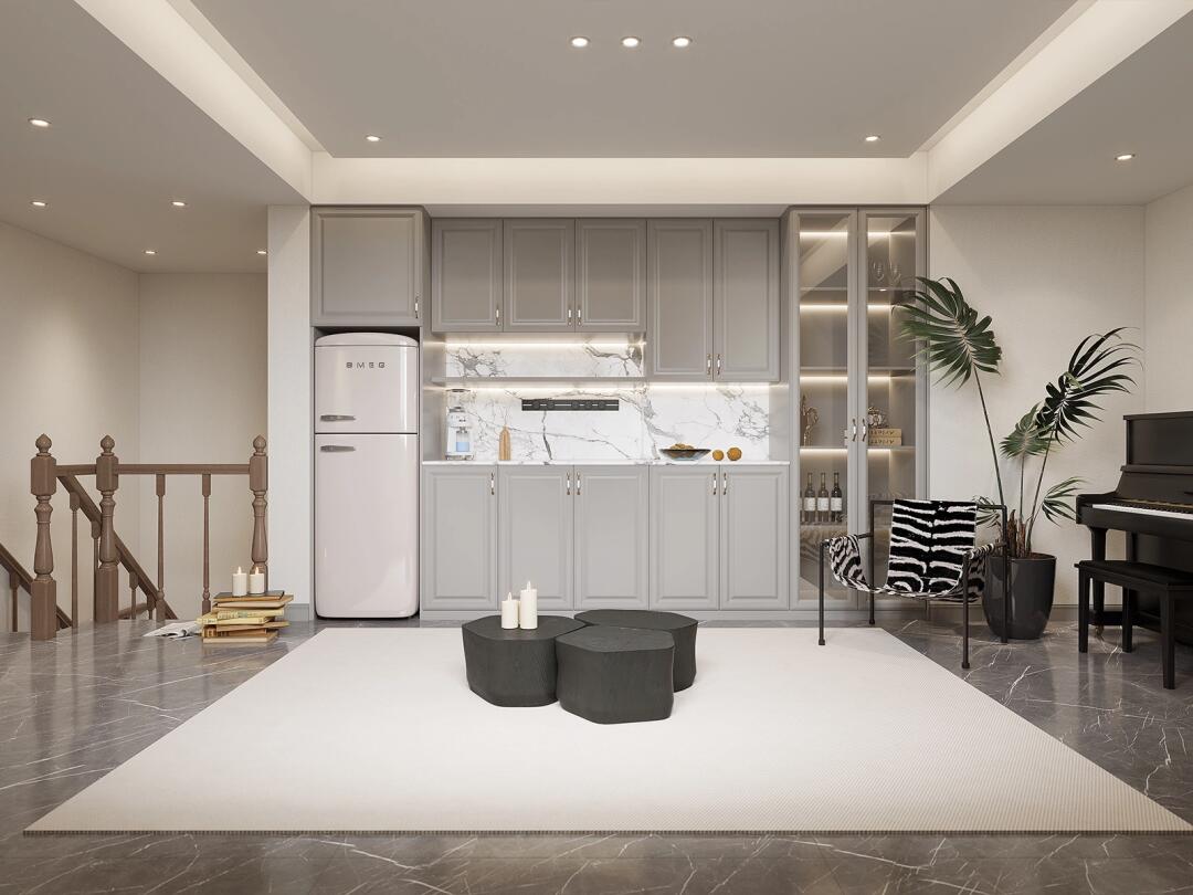 在淺灰色的空間中相互呼應,展示出空間的優雅氣質。