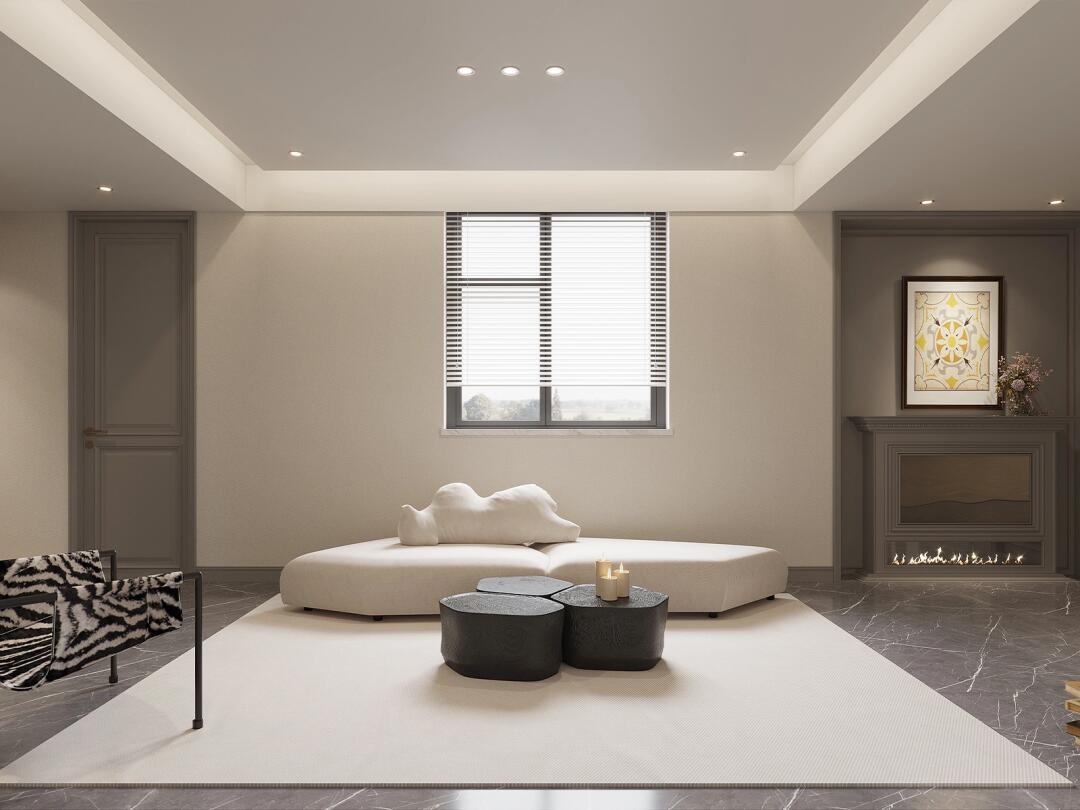 電視墻采用半墻的形式,上半部分選用米咖色做搭配為空間增添柔和的溫馨氛圍,
