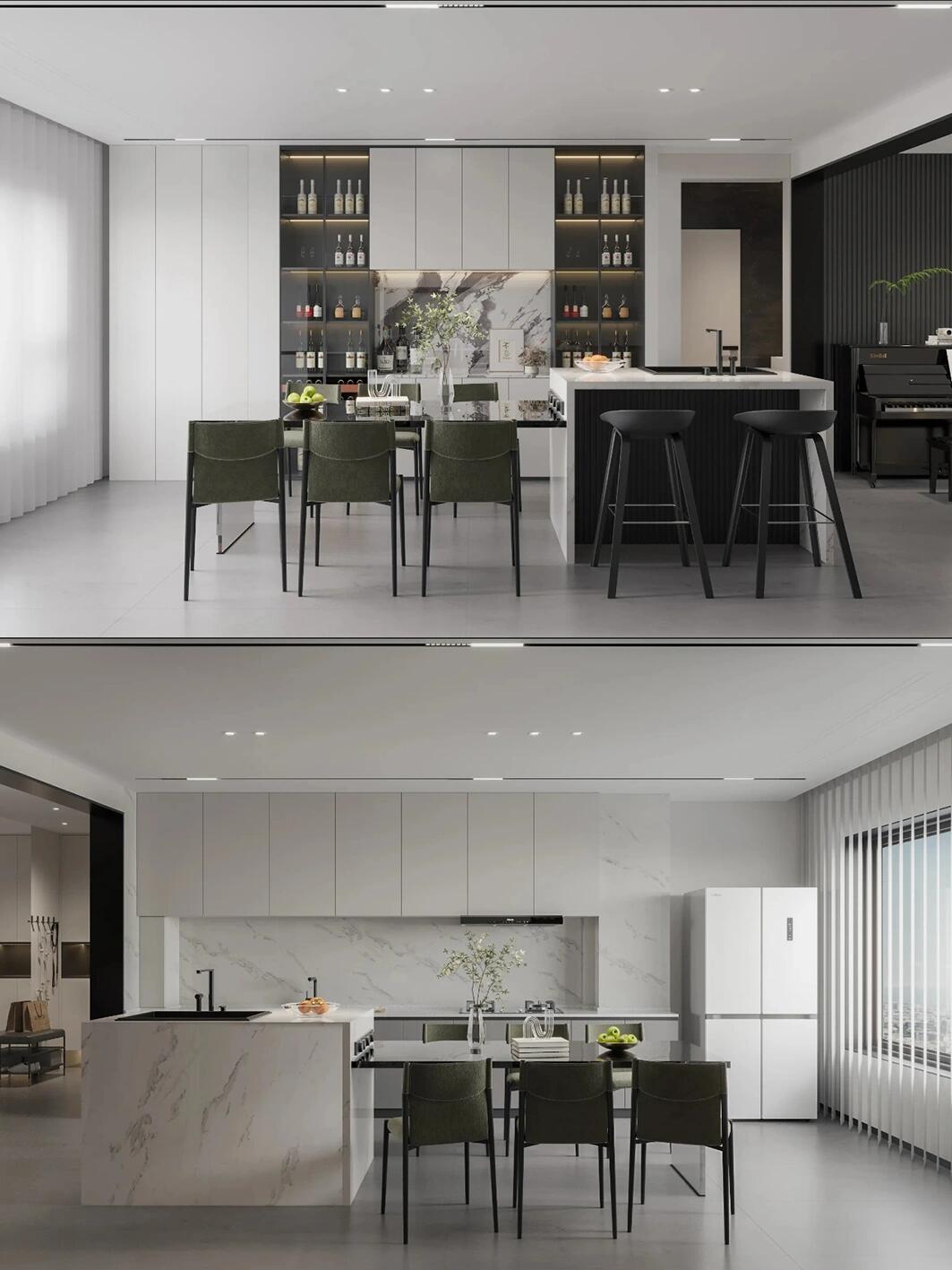 黑白基調作為主色調,瞬間帶來了視覺的沖擊力和層次感,讓你的空間變得非常現代又富有層次!
