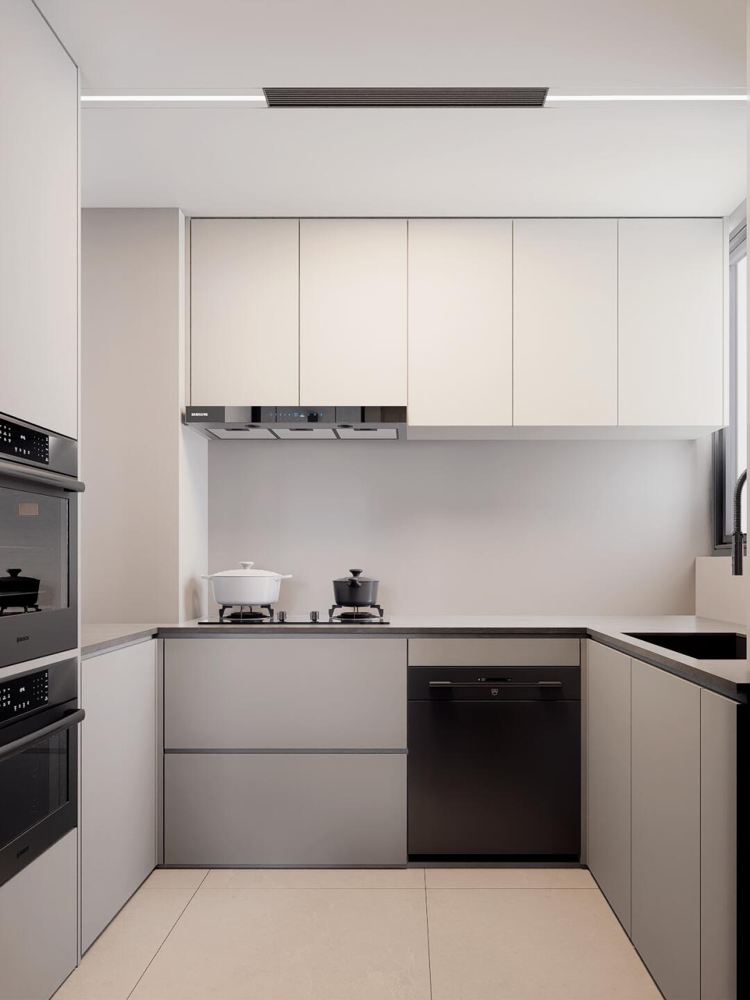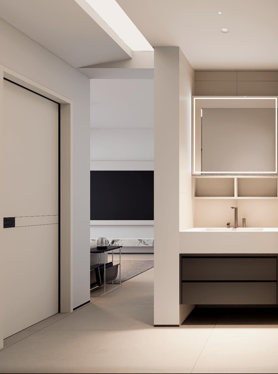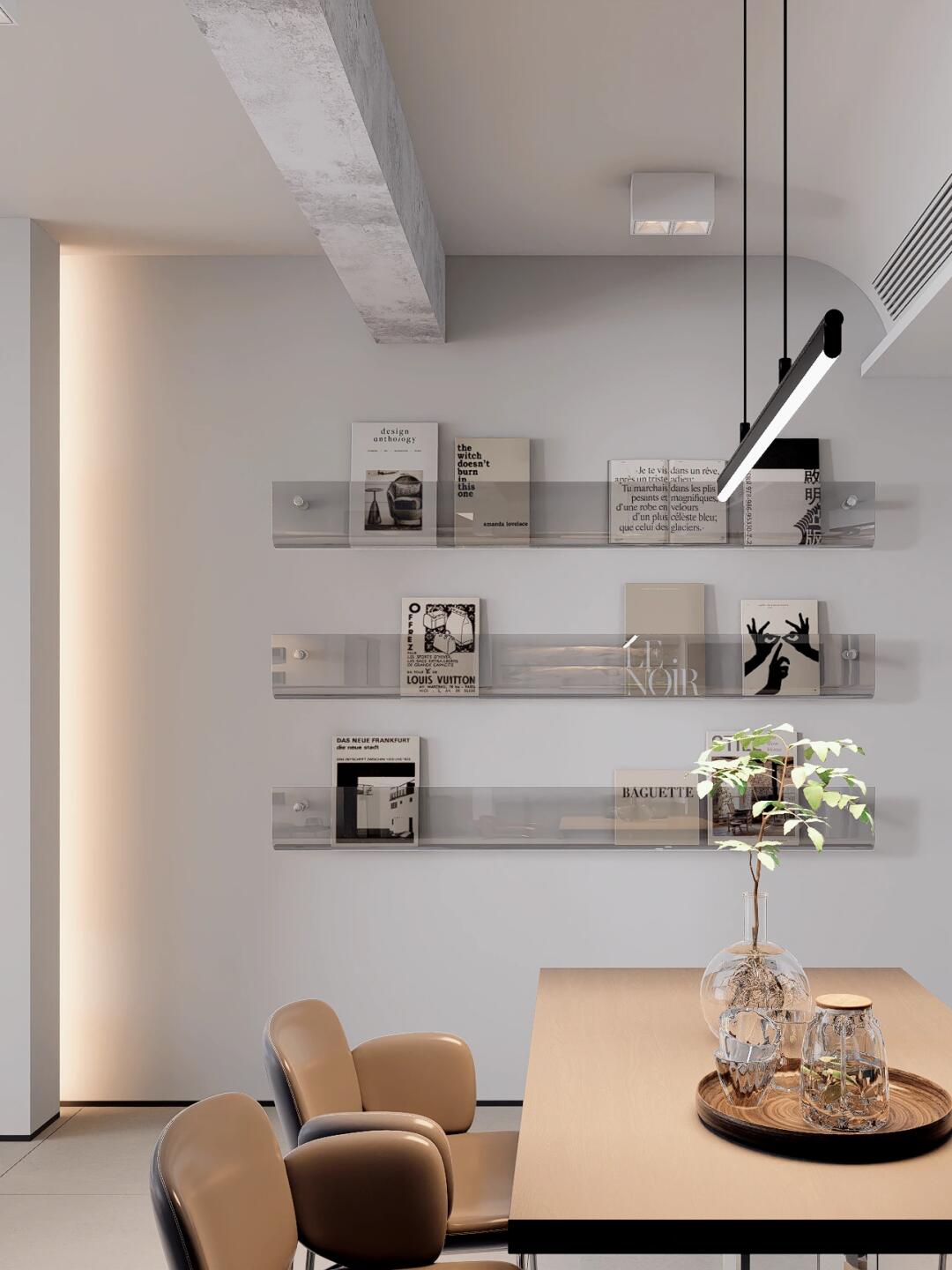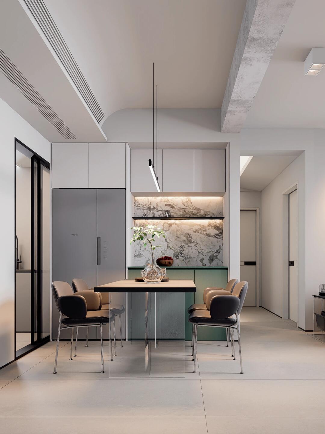 再搭配上反光燈槽,讓墻頂仿佛融為一體,營造出一種簡潔又大氣的空間感。