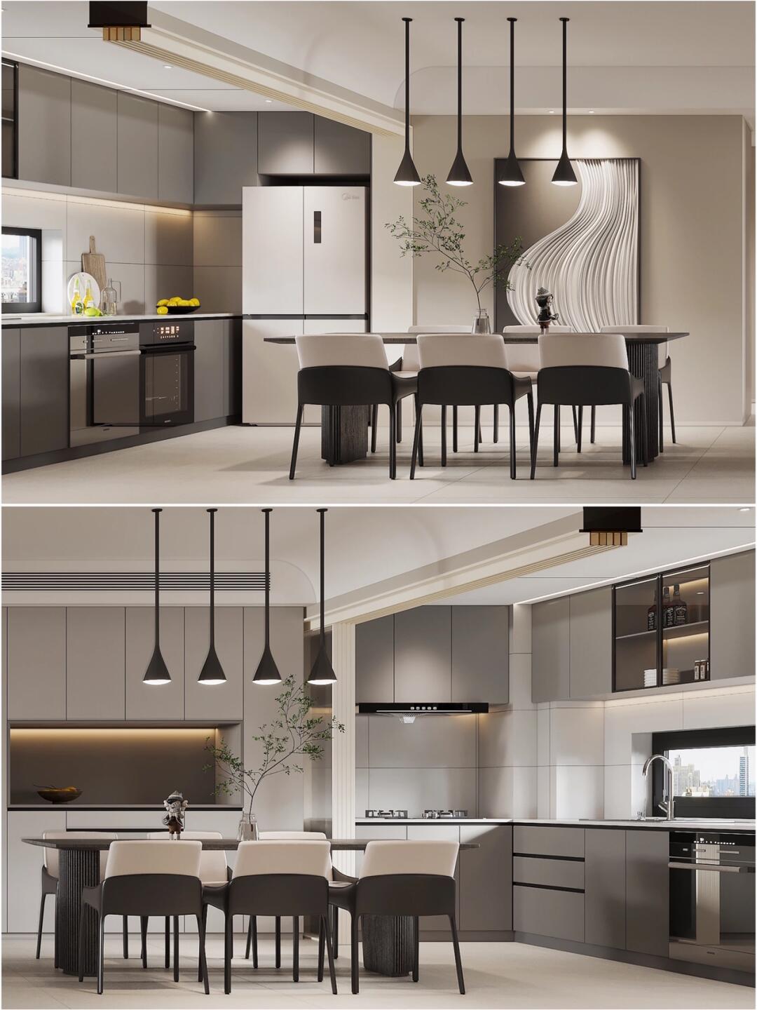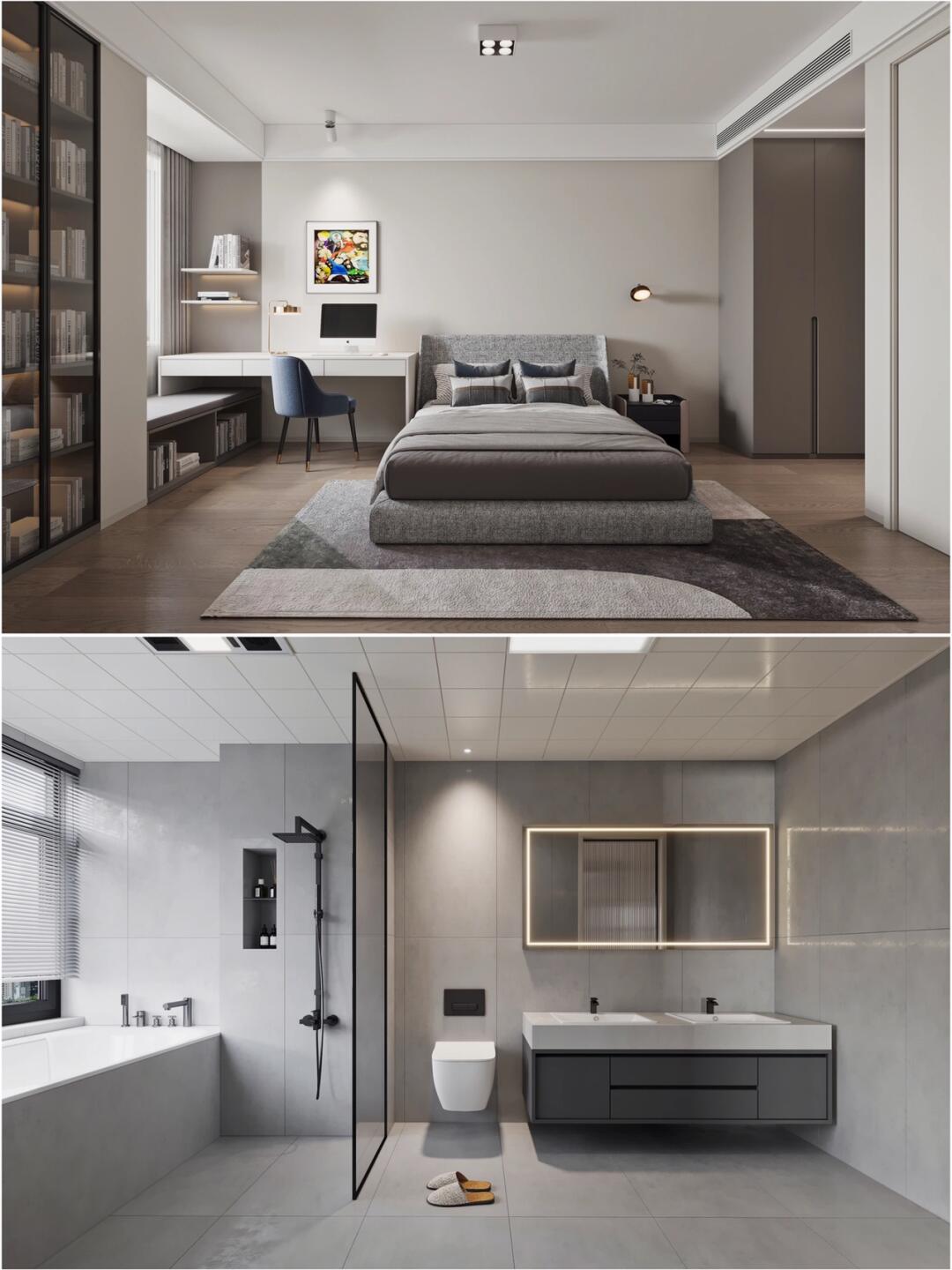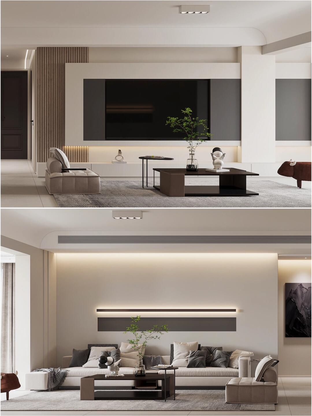 將深灰色塊穿插其中,營造了溫馨居家的氛圍感和場景感。