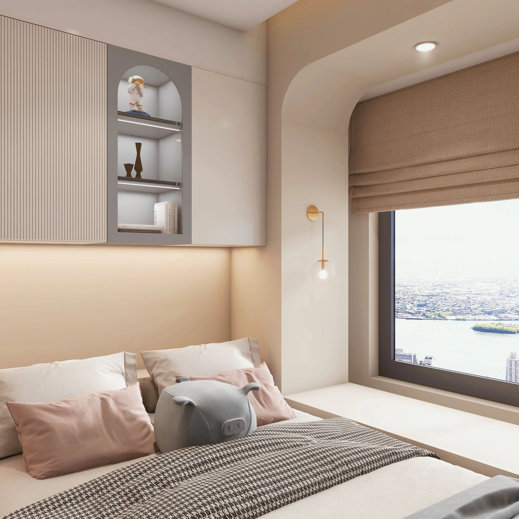米灰色+淡淡的藍灰色打造高級感又溫馨的空間