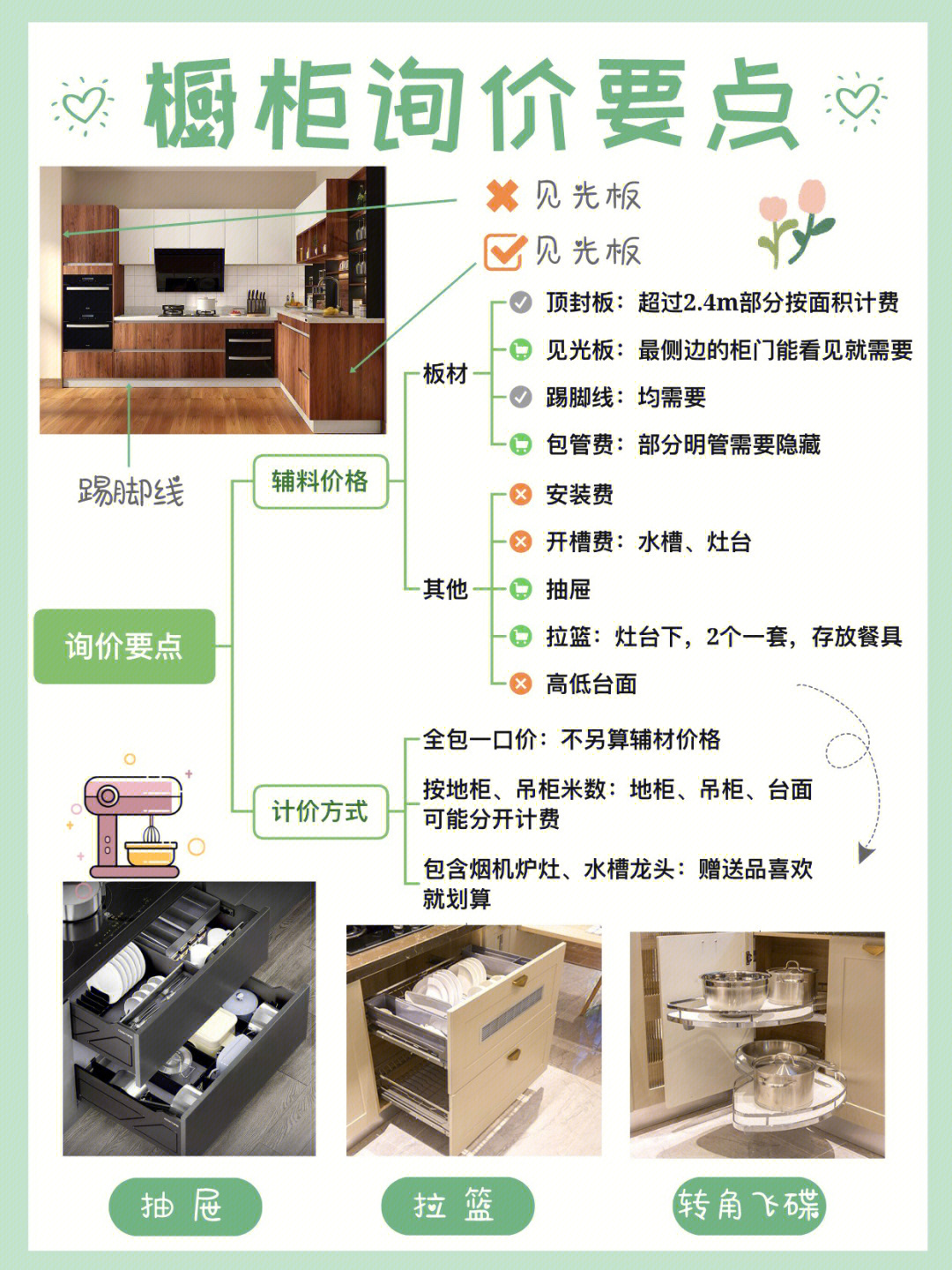 櫥柜的選購(gòu)要點(diǎn)、結(jié)構(gòu)設(shè)計(jì)及收費(fèi)輔材