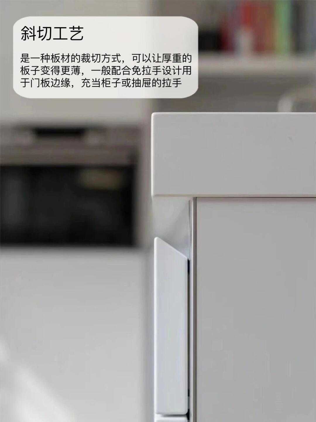 是一種板材的裁切方式,可以讓厚重的板子變更薄,一般配合免拉手的設計,用于門板邊緣,充當柜子、抽屜的拉手。