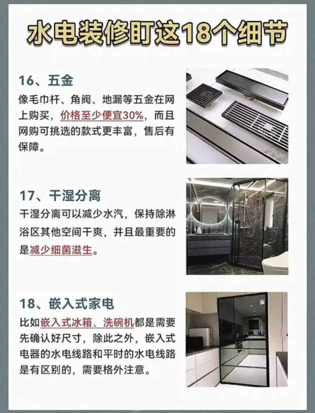 不注意時就對之后的使用和一些安全問題出現。裝修之前了解一下小細節為你最后的使用幸福感提高一分。??????