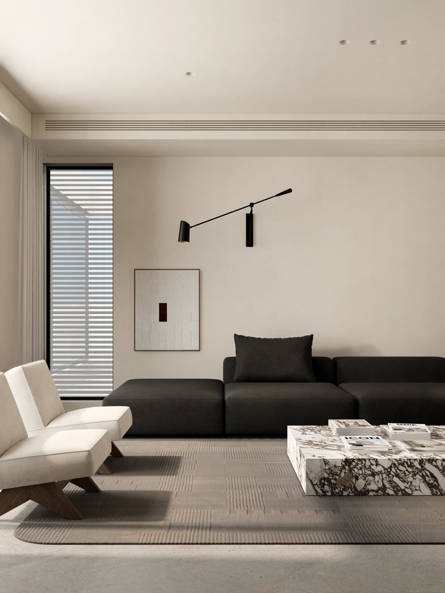 將住宅內的家具、裝飾、物品簡化大到最少,住宅空間要留白,家具要樸素質感,儲物空間不能過多,家具看似很少,其實最美,家具可以選用淺色再用深色格外點裝,這樣看起來層次分明、簡單又有格調。